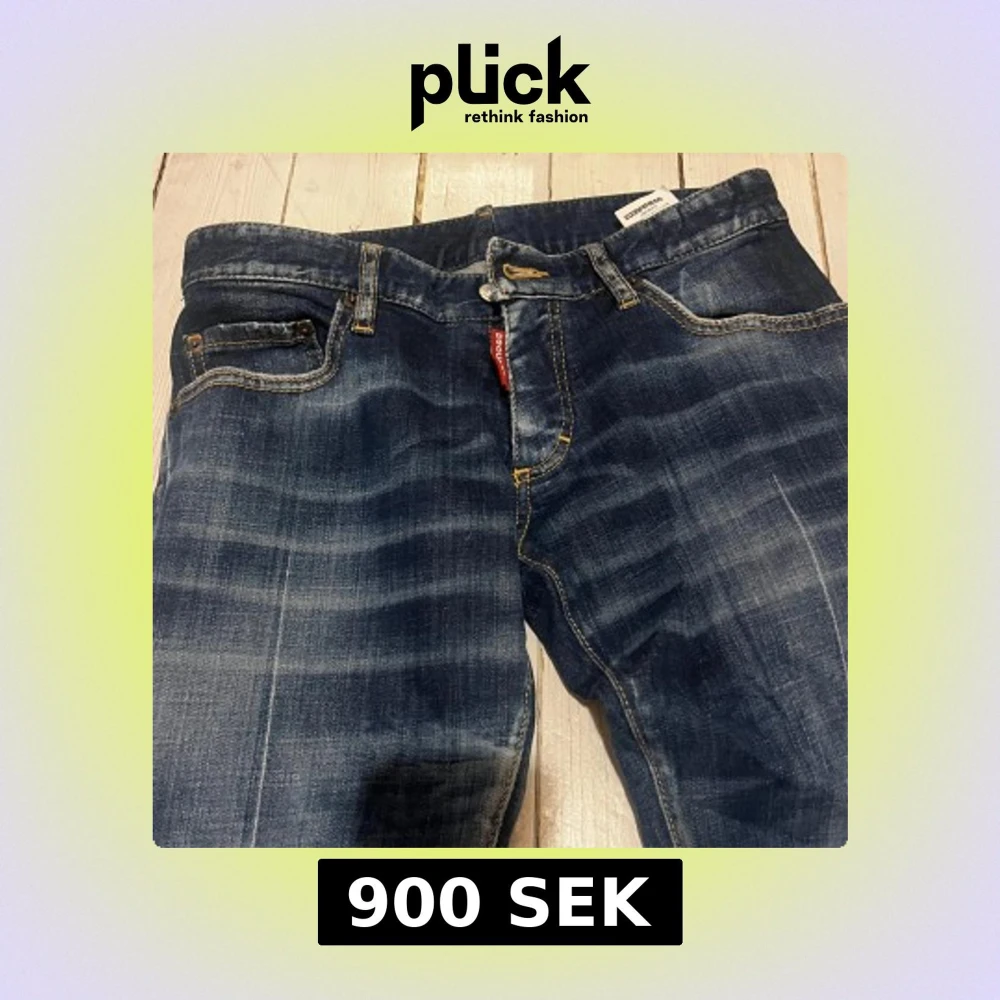 Snygga blå jeans från Dsquared2 med klassisk femficksdesign och en cool tvättad look. Aldrig använda. Väldigt långa, går ner till marken på min vän som är 180. Köpta för typ 4000kr.
