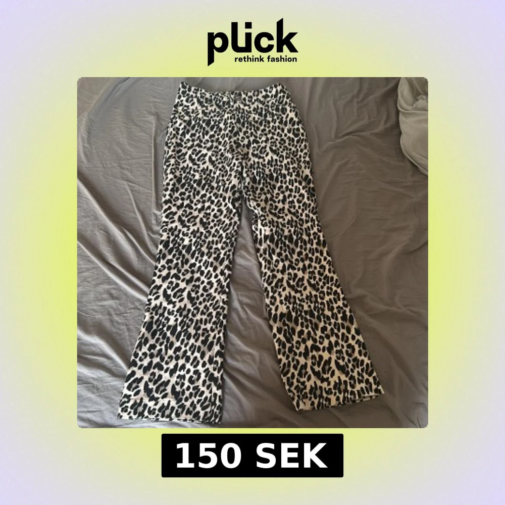Säljer ett par snygga byxor med leopardmönster i svart och beige. Byxorna har rak passform och normal midja. Perfekta för dig som vill sticka ut lite extra med din stil! Byxorna sitter midwaist/low waist beroende på kroppsform. Fickorna på byxorna är fejk! Dessa byxor är köpta i Chile så dom går ej att hitta någon annanstans! 💌Köparen står för frakten