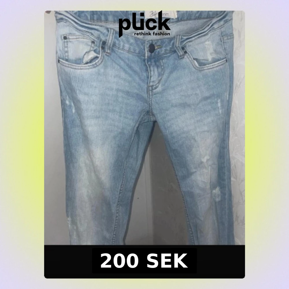 Säljer ett par ljusblå jeans från John Denim med klassisk femficksdesign och normal passform. Jeansen har raka ben och är tillverkade i mjukt bomullsjeansmaterial. Perfekta för dig som gillar en avslappnad och enkel stil.