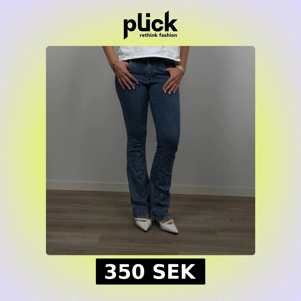 Snygga blå jeans med bootcut passform. Jeansen är lite randiga vilket är så snyggt och gör att dem sticker ut lite från andra vanliga blåa jeans. W 36 L 32
