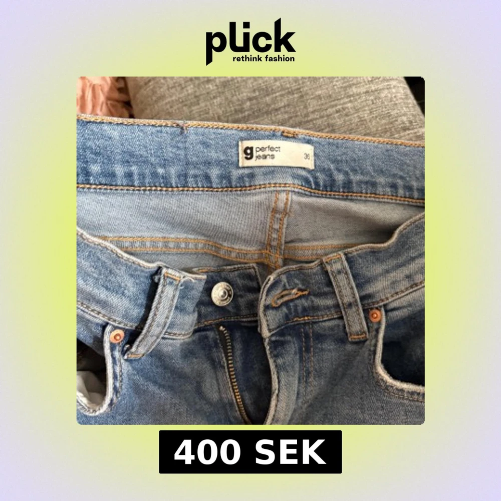 Säljer ett par klassiska blå bootcut jeans från g perfect jeans i storlek 36. Jeansen har normal passform, med medelhög midja och snyggt utsvängda ben. Tillverkade i jeansmaterial med orangea sömmar och femficksdesign.