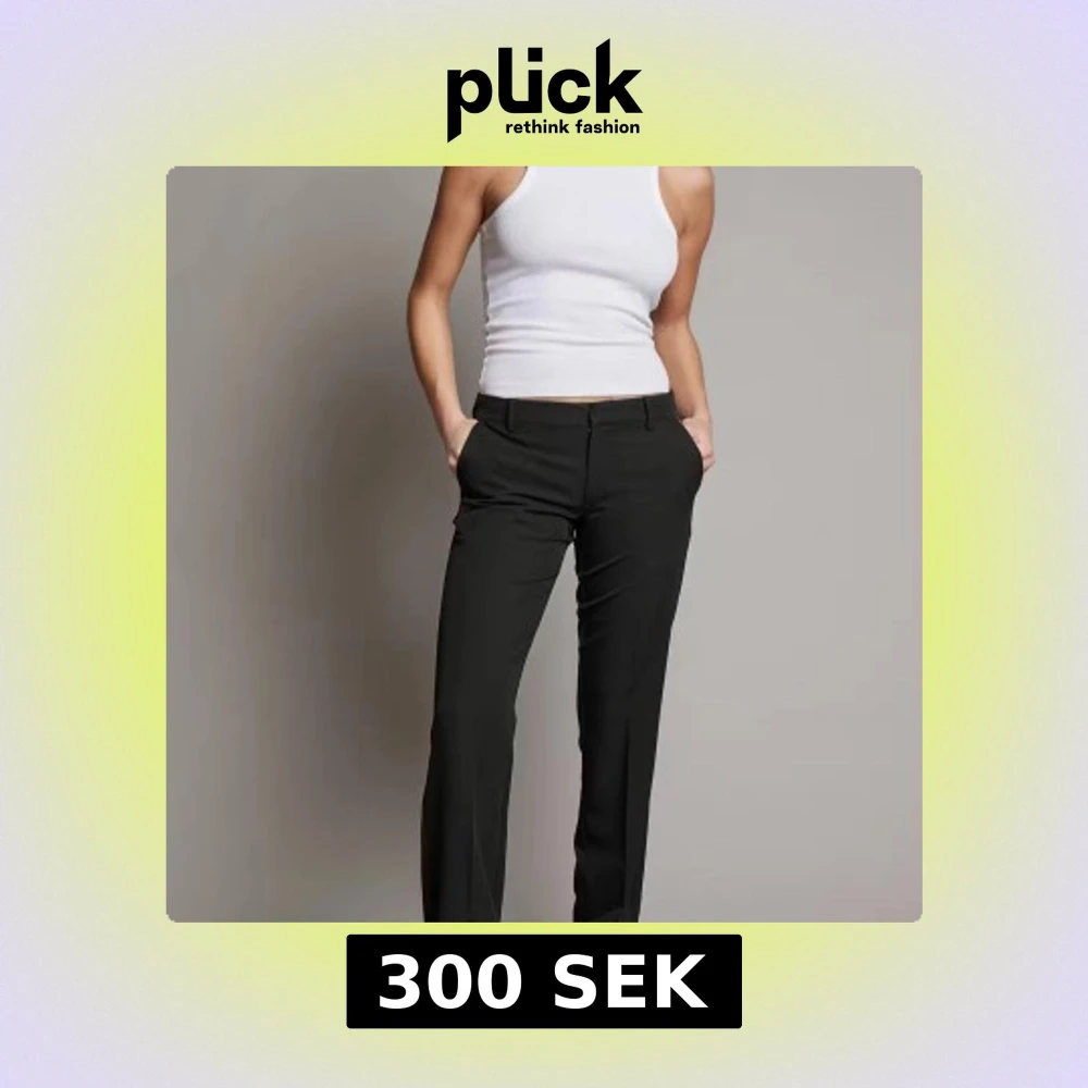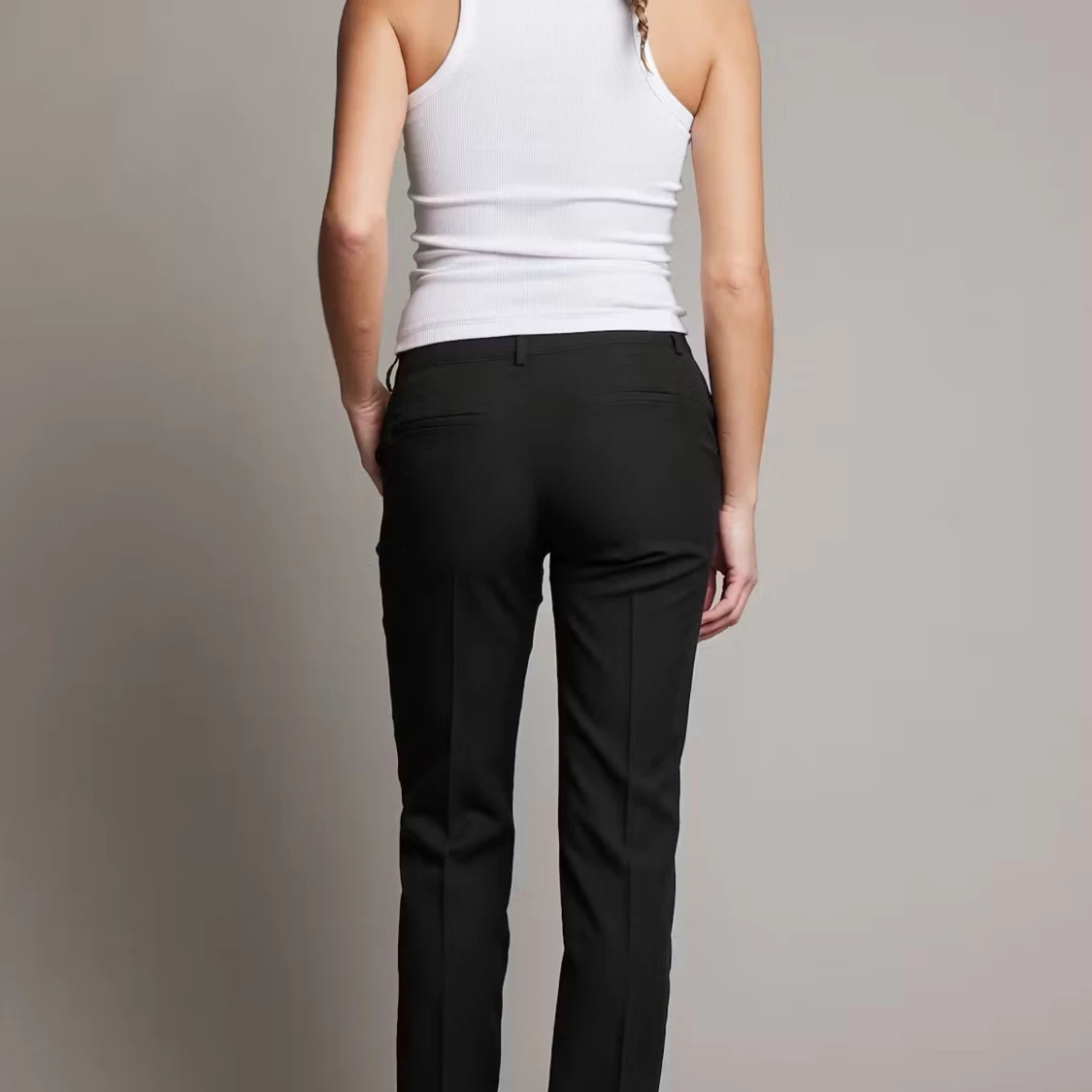 Snygga svarta kostymbyxor med raka ben och klassisk passform. Byxorna har diskreta fickor fram och bak, hällor för bälte och stängs med dragkedja och knapp. Perfekta för en clean och stilren look.