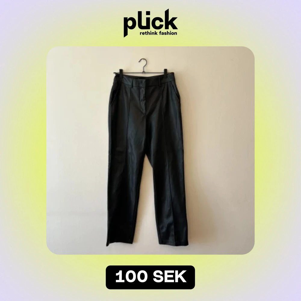 Säljer ett par snygga svarta skinnbyxor i högmidjad modell. De har en rak passform och stilrena detaljer med fickor både fram och bak. Perfekta för en cool och elegant look!