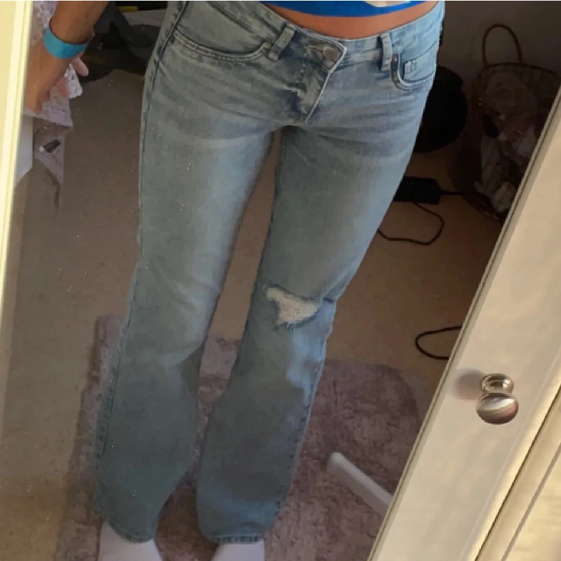 Lågmidjade byxor, Nästan nya, Använda 2 gånger, Bra skick, Bootcut Low waist & demin, Storlek 34-36,S/M Pris kan diskuteras