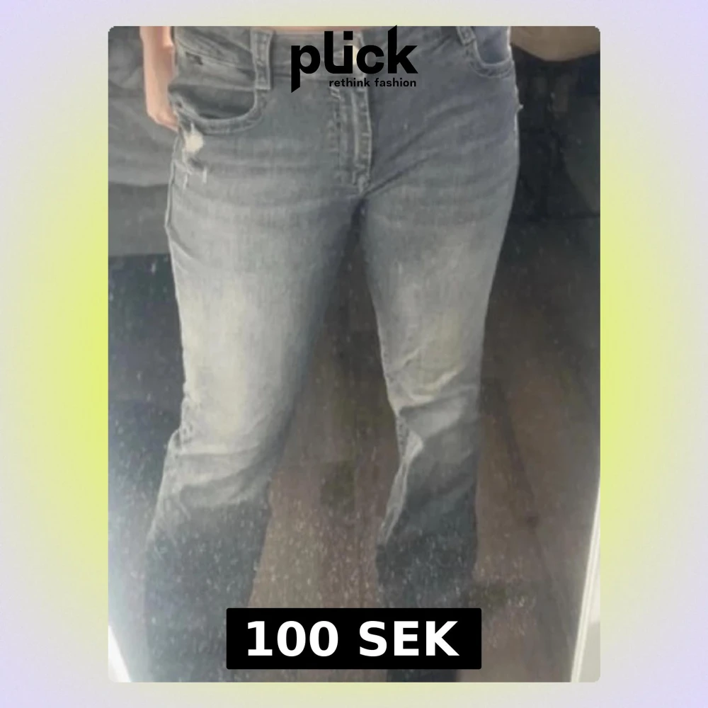 Säljer ett par klassiska gråa jeans med mellan midja och raka ben. Jeansen har en lätt tvättad look och subtila slitningar vid fickan. Perfekta till vardags och passar till det mesta. Stängs med knapp och dragkedja. Har ett band inuti som går och ta dra ut och syns inte, tanken var att göra jeansen mindre men de blev ingen skillnad tyvärr därav säljer jag de.