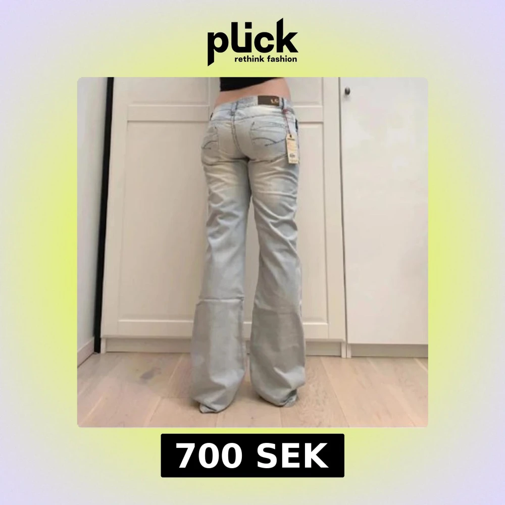 Snygga ljusblå jeans från LG med bootcut-stil. De har en klassisk femficksdesign och är lågmidjade. Perfekta för en avslappnad look. Märkesetikett synlig baktill. Midjemått 37 cm, innerbenslängd 86 cm.