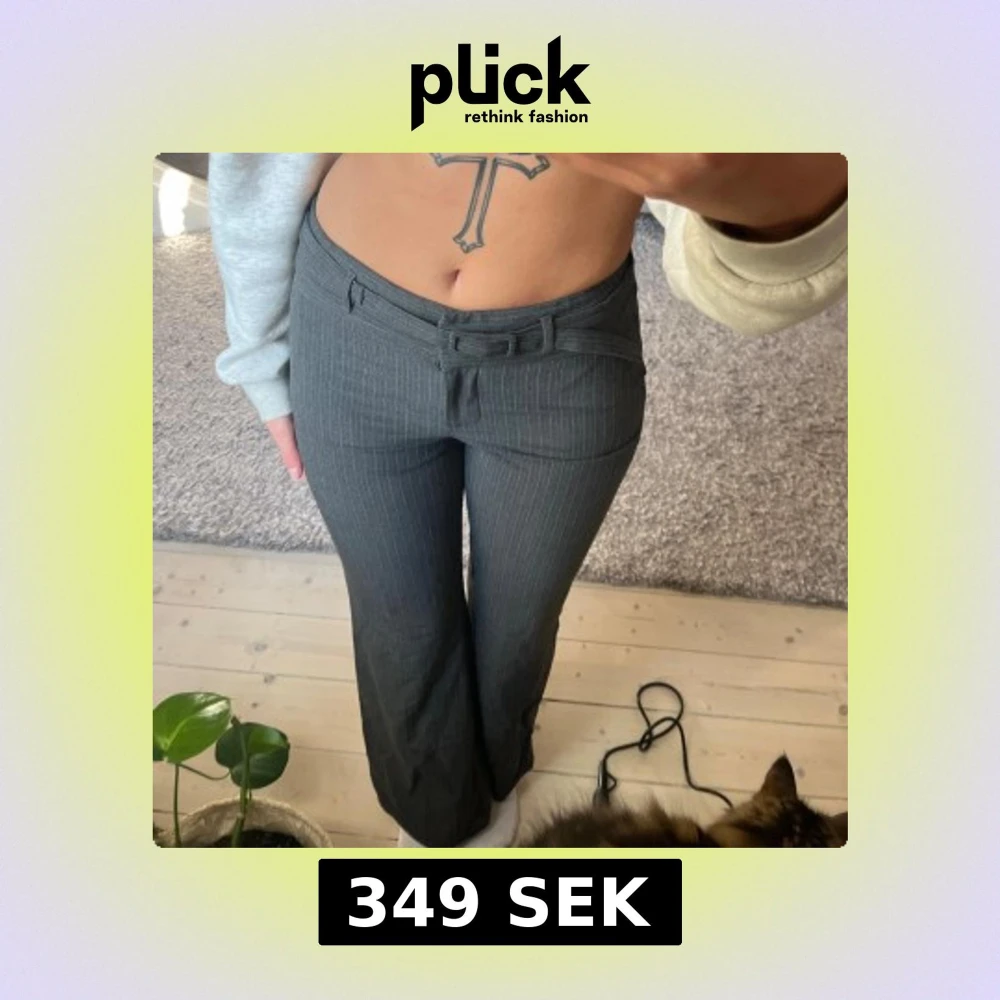 Snygga grå kostymbyxor med tunna vita ränder och tillhörande bälte🤎