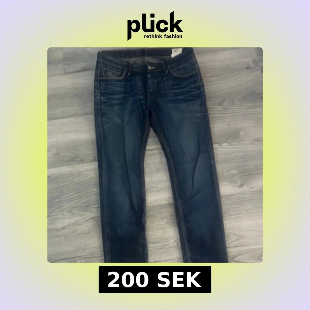 Snygga mörkblå jeans från G-Star RAW med klassisk femficksdesign och diskreta slitningar. Jeansen har raka ben och normal passform, perfekt till vardags. Gula sömmar och läderpatch bak ger en schysst detalj.