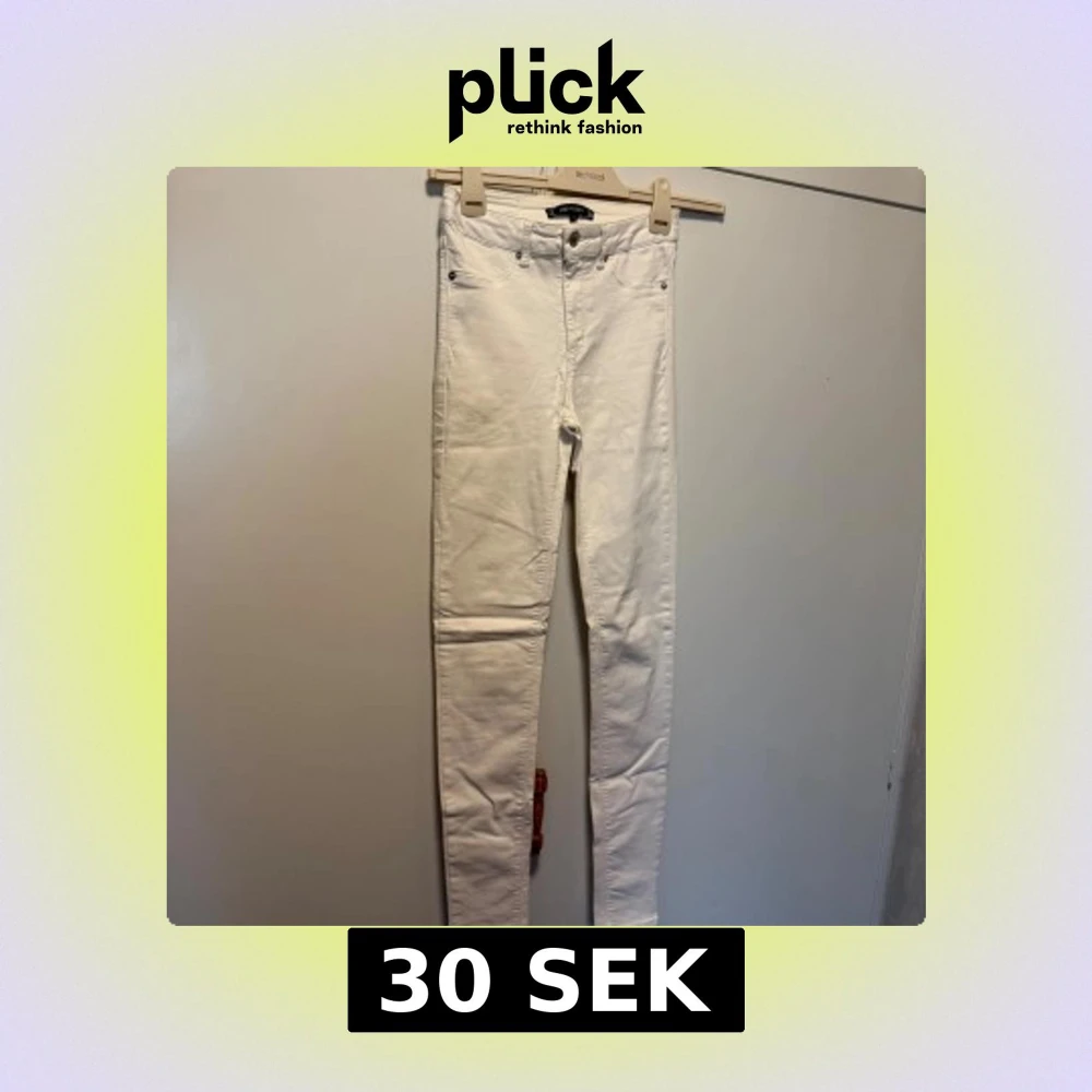 Vita jeans i storlek S, kommer inte ihåg vart jag köpt.