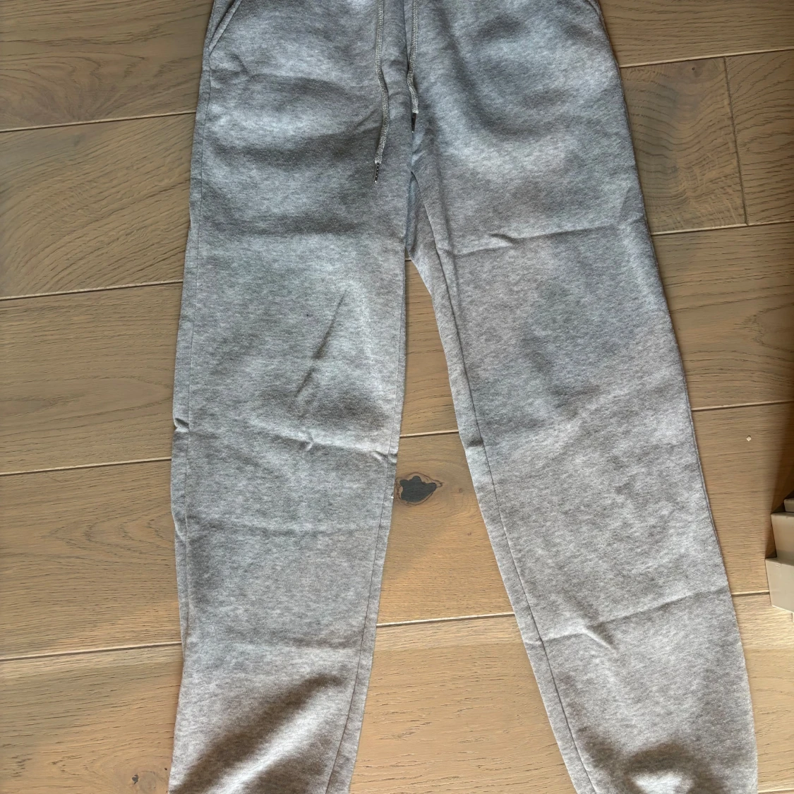 Snygga grå mjukisbyxor med dragsko i midjan och avslappnad passform. Perfekta för chill dagar eller när du vill vara bekväm. Tillverkade i mjukt bomullsmaterial och har klassisk look utan tryck eller mönster.
