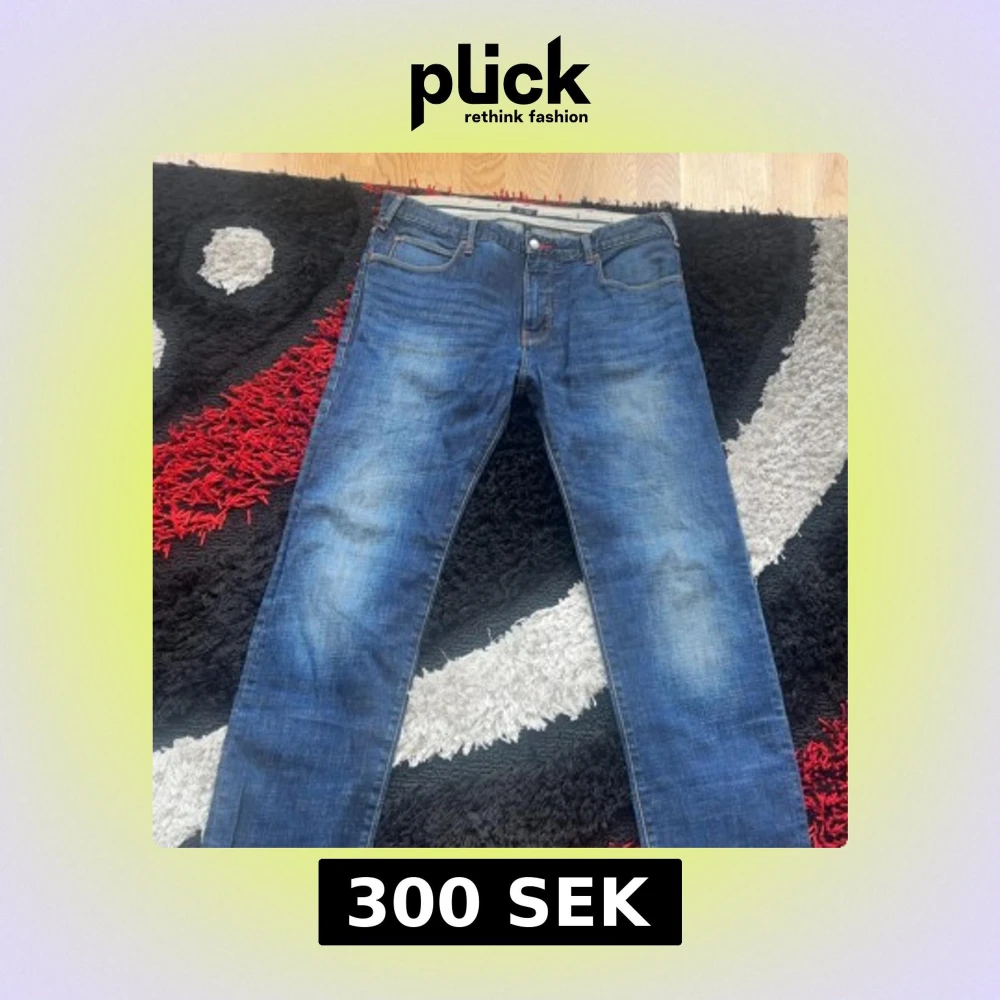 Snygga blå jeans från Armani Jeans i klassisk femficksmodell. Jeansen har en mörk tvätt med lätt slitning och röda detaljer vid fickorna. AJ-logga på bakfickan och läderpatch i midjan. Perfekta för dig som gillar stilrena och tidlösa jeans. ”Bara seriösa köpare”.