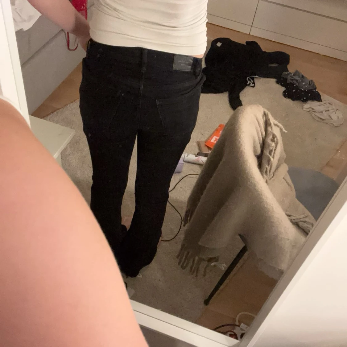 Snygga svarta jeans från gina i storlek 36. De har en tight passform och är lågmidjade. väldigt sköna och bra skick..