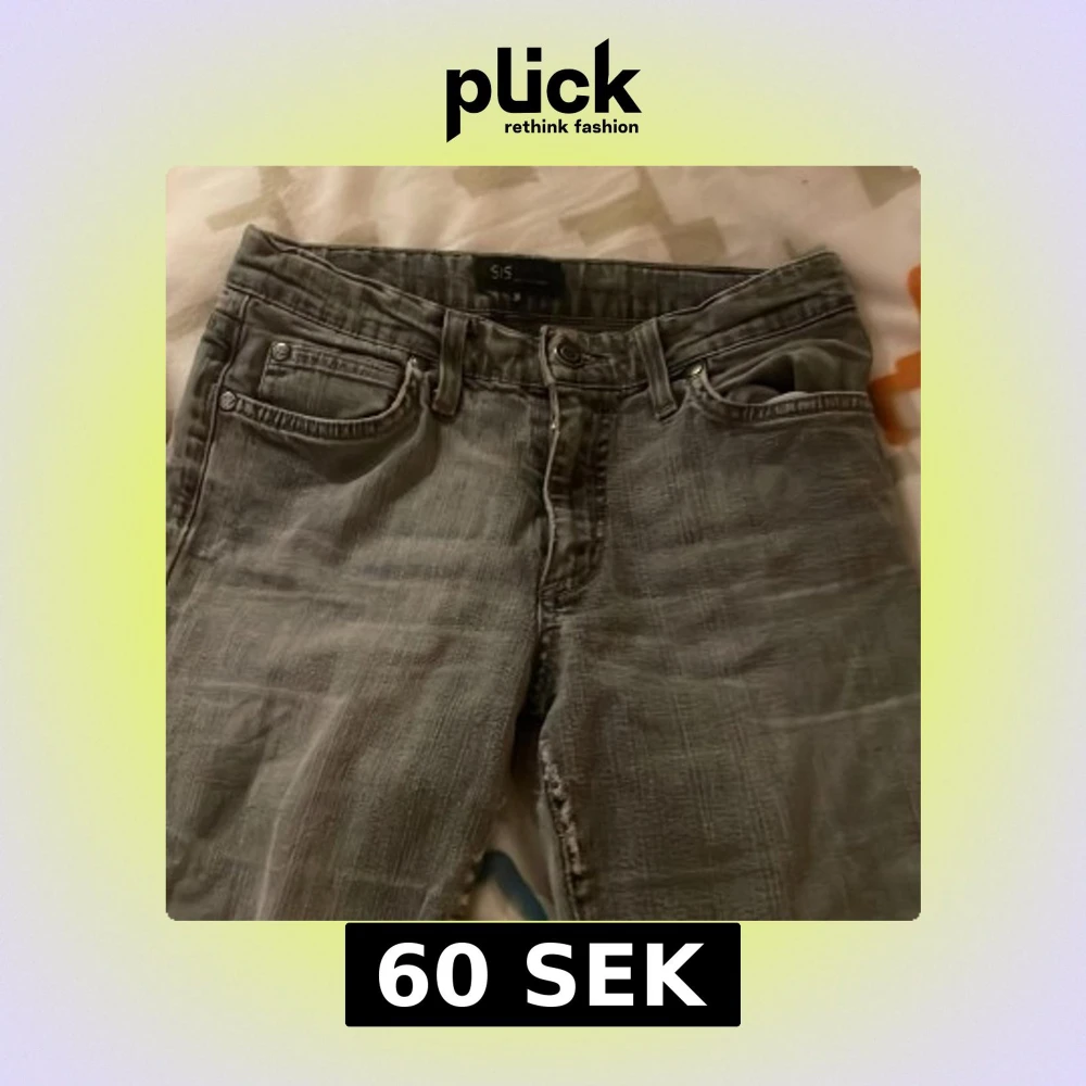 Grå jeans från SIS by Sisters i storlek 36. Jeansen har en snygg tvättad look, klassiska fem fickor och råa, fransiga benslut för en trendig vibe. Materialet är jeans och passformen är rak med normal midja. Perfekta för dig som gillar en avslappnad stil.