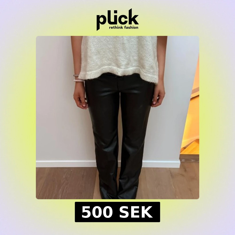 Snygga svarta skinnbyxor med en tight passform. Byxorna har en klassisk design med raka ben och är perfekta för en stilren look. Tjejen på bilden 166 cm❤️