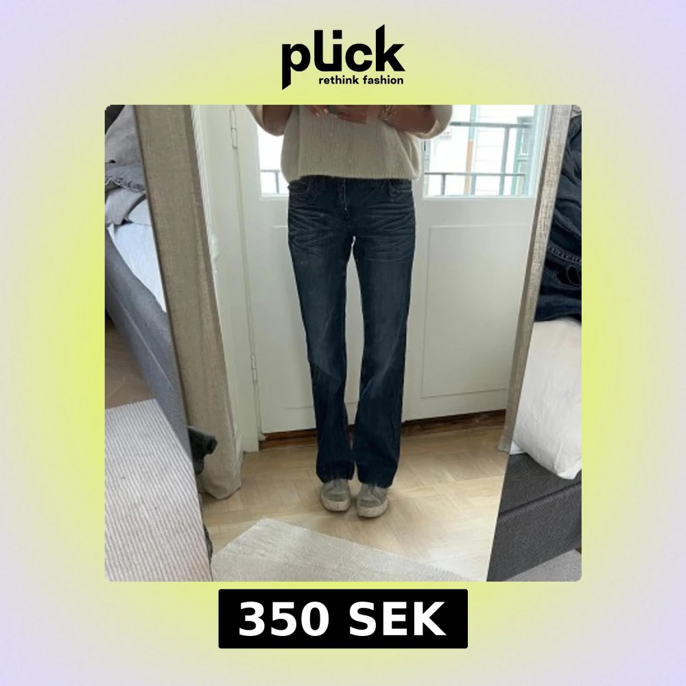 Säljer ett par klassiska blå jeans från s.Oliver med bootcut-passform och låg midja. Väldigt bekväma och i bra skick. Jag är 169 cm lång, och på bilderna är mitt innerbensmått ca 82,5 cm och midjemått (platt mätt på mig) ca 31 cm.