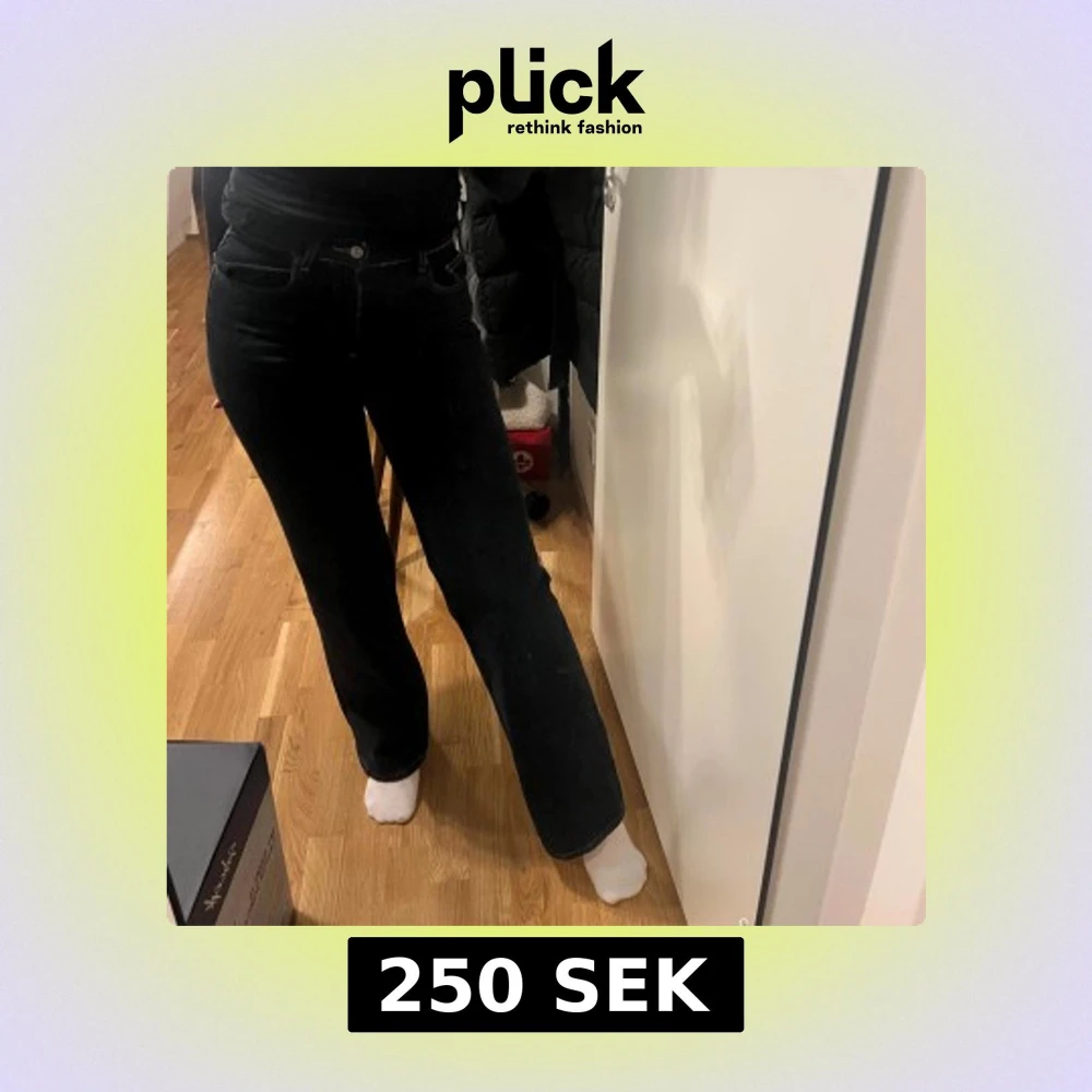 Snygga svarta jeansbyxor med hög midja och raka ben. De har klassiska femficksdetaljer och en dragkedja framtill. Perfekta för en stilren look.