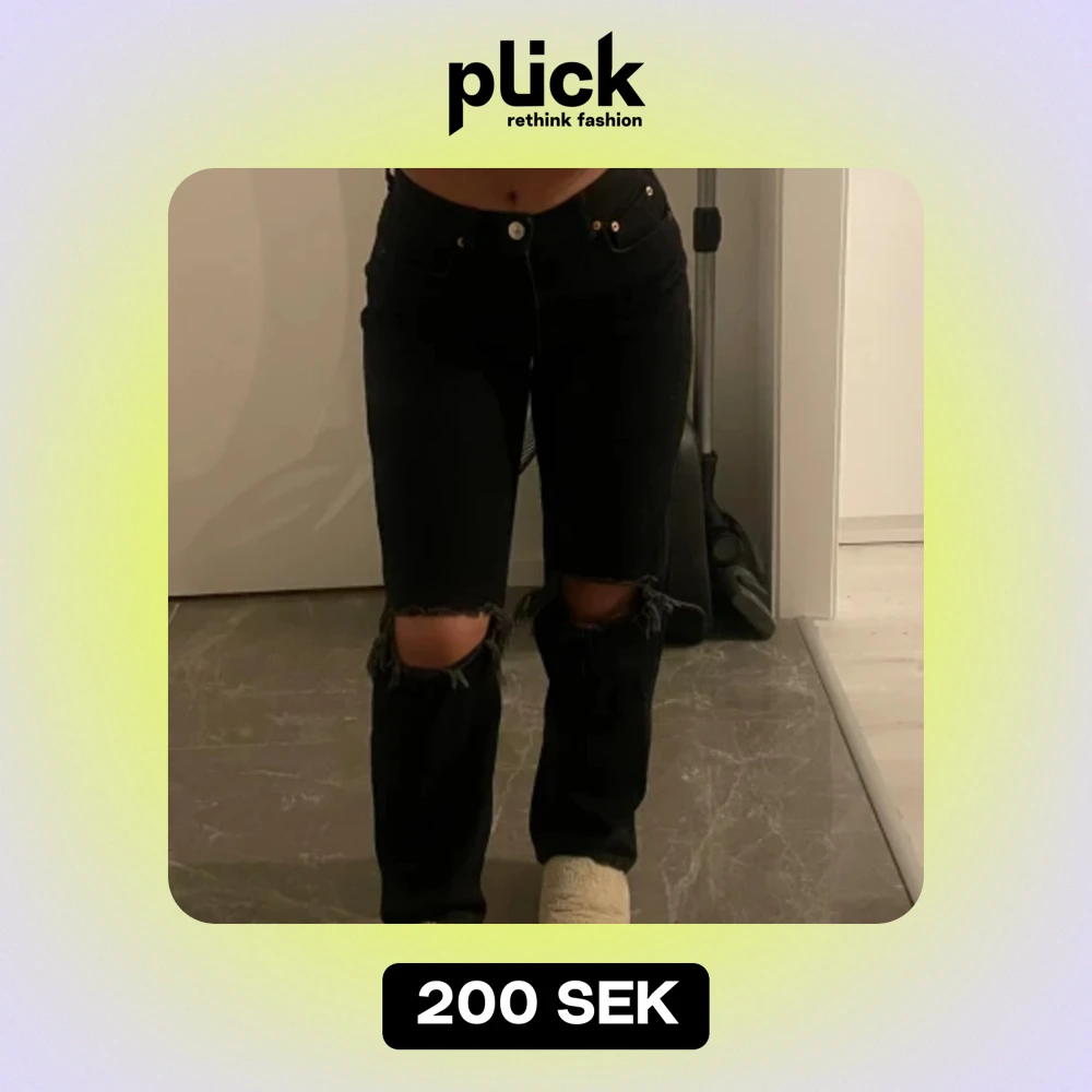 Ett par svarta jeans i rakare modell frĂ„n Bikbokđ