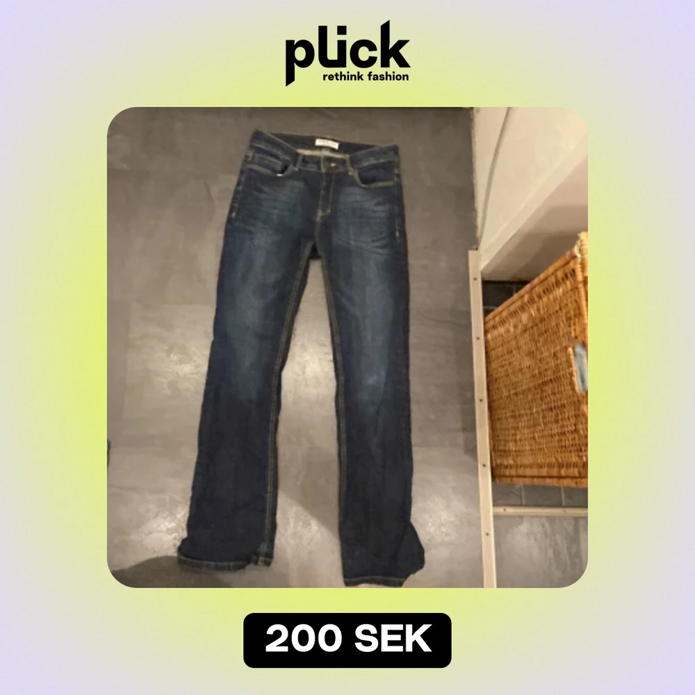 Supersnygga mid/ lågmidjade jeans från secondhand i nyskick/ mycket bra. Midjemåttet är 37 cm rakt över, innerbenslängden är 80cm