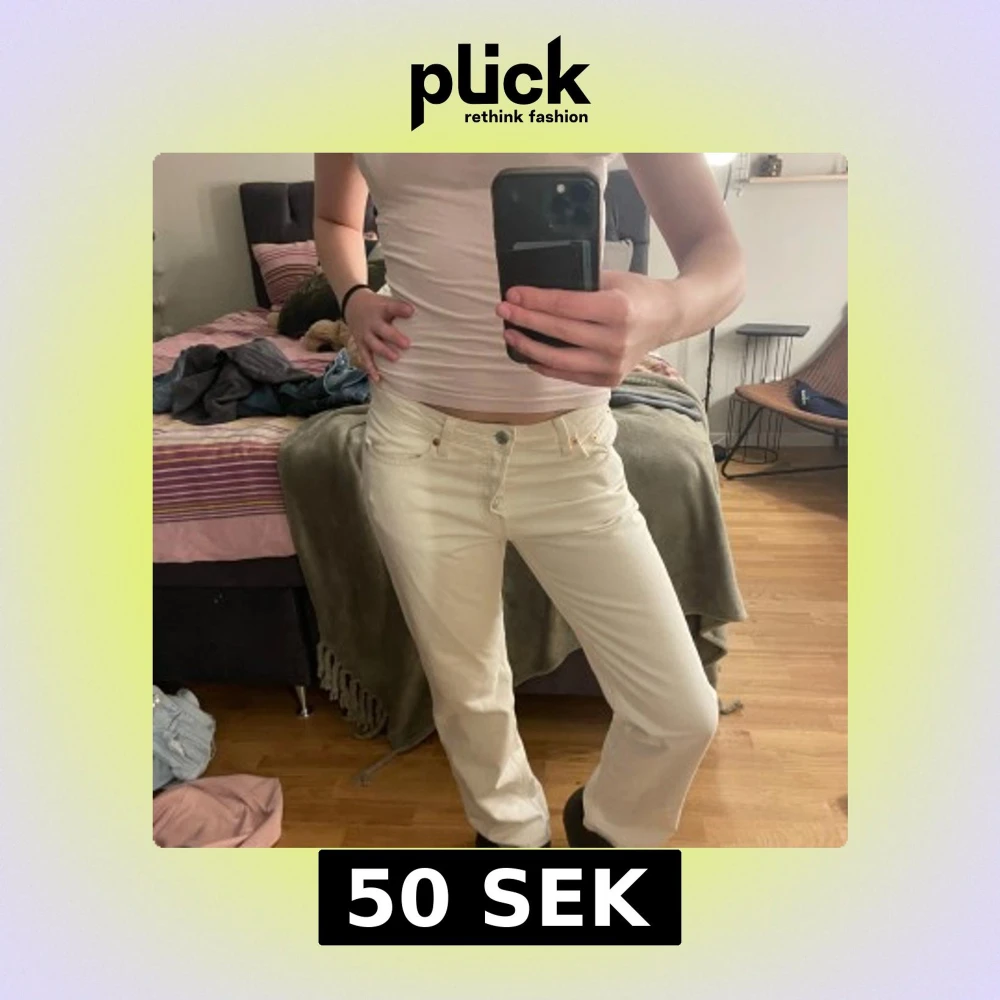 Vita baggy jeans som är mid waist. Säljer eftersom de är för korta. Köpta här på plick.