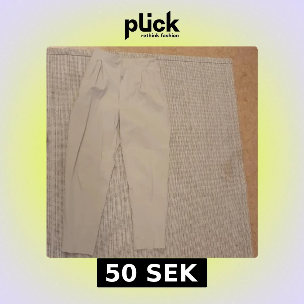 Snygga beige kostymbyxor från Holly & Whyte by Lindex i storlek 36. Byxorna är högmidjade med avsmalnande ben och har veck framtill för en dressad look. Perfekta till en stilren outfit och tillverkade i ett mjukt bomullsmaterial.