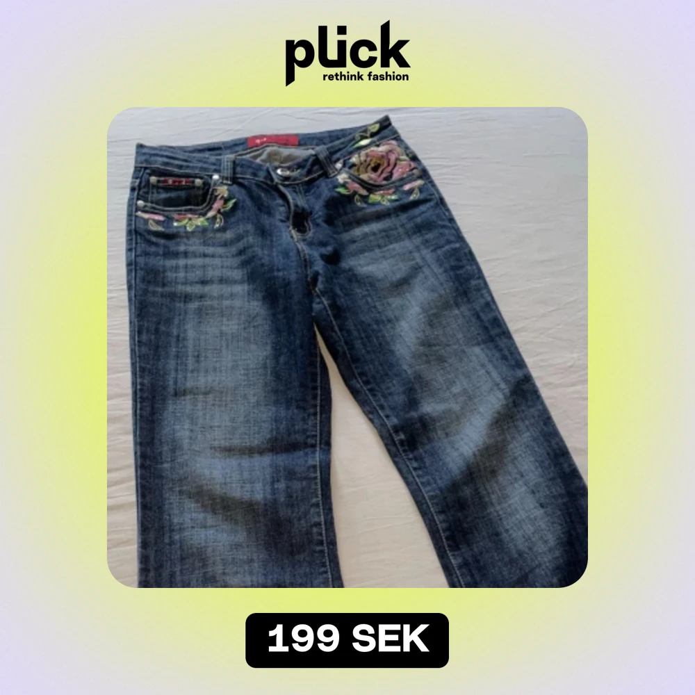 Jättesnygga lågmidjade jeans med blomdetaljer på Säljer dem pga att dem inte kommer till användning!