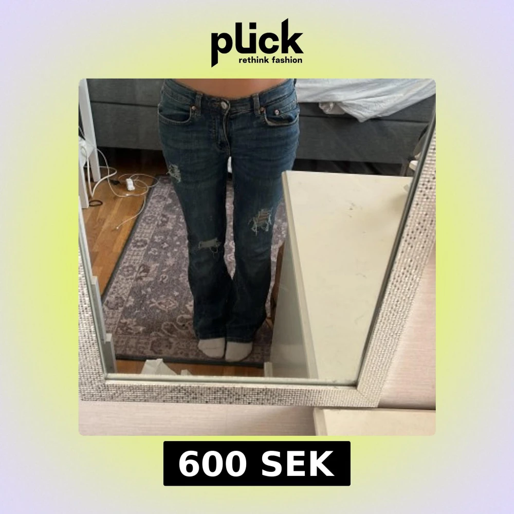 Blå jeans, har klippt hålen själv, kan alltid sänka pris!