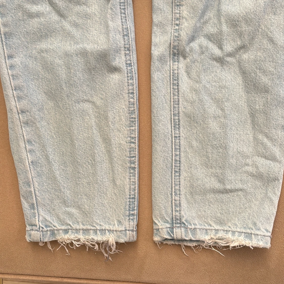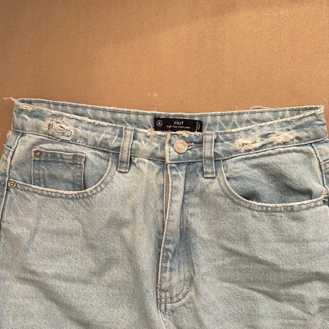 Snygga ljusblå högmidjade jeans från Riot, köpta på Nelly. De har en avslappnad passform och slitna detaljer vid fållen.