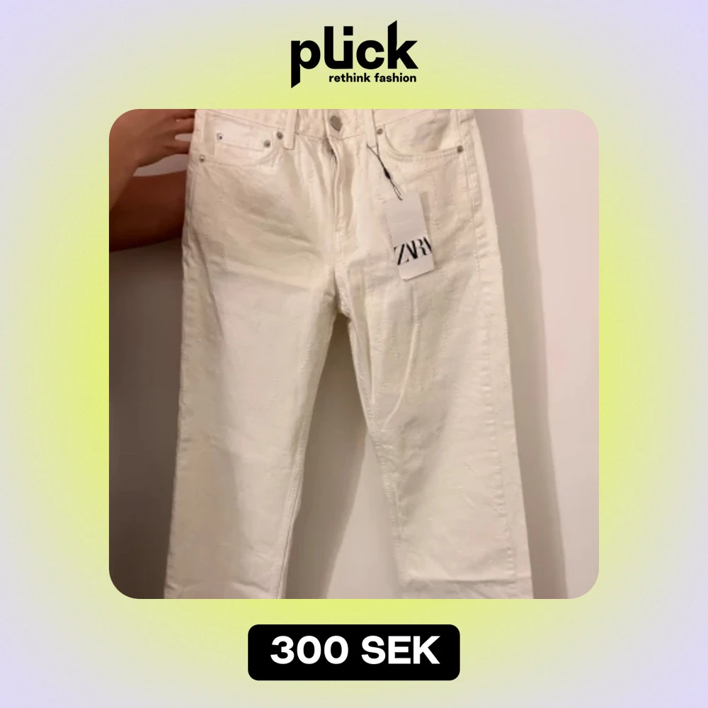 Fina vita jeans från zara med detaljer. Helt oanvända prislapp är kvar som ni ser på bilderna. Skulle säga att dom är lite små i storlek.