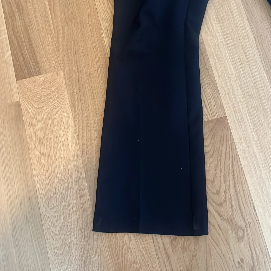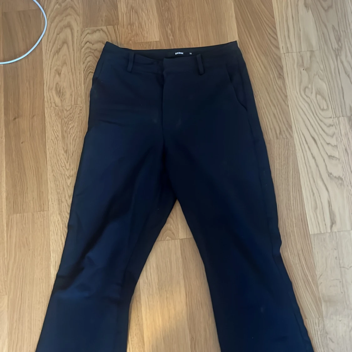 Snygga svarta kostymbyxor med en klassisk design. Byxorna har en botcut passform och är perfekta för en stilren look. De är från bikbok i stl 36.