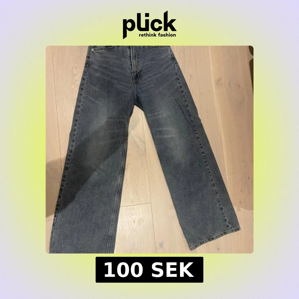 Säljer ett par gråa wide jeans från H&M Divided i storlek 36. Byxorna har en rak och bred passform med klassisk femficksdesign och dragkedja. Perfekta för dig som gillar en avslappnad stil och vill ha jeans med lite extra utrymme.