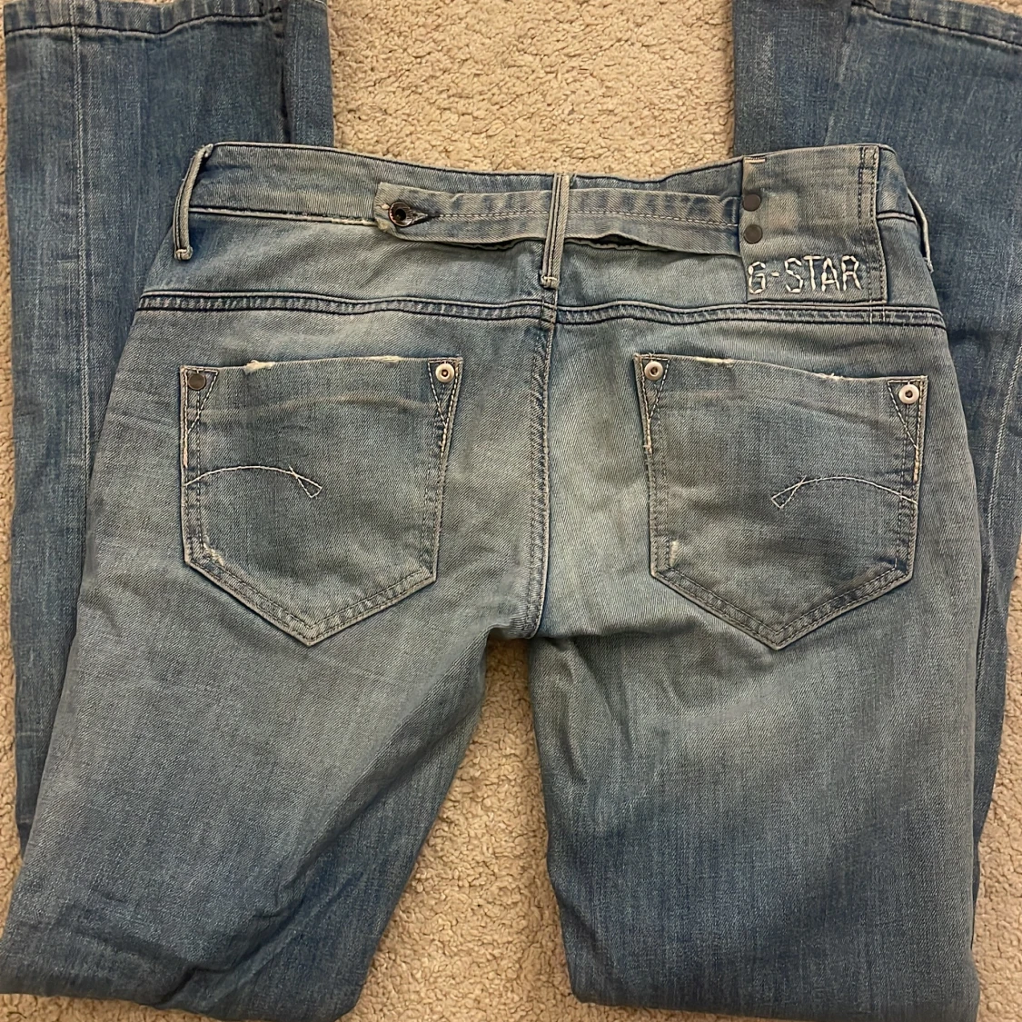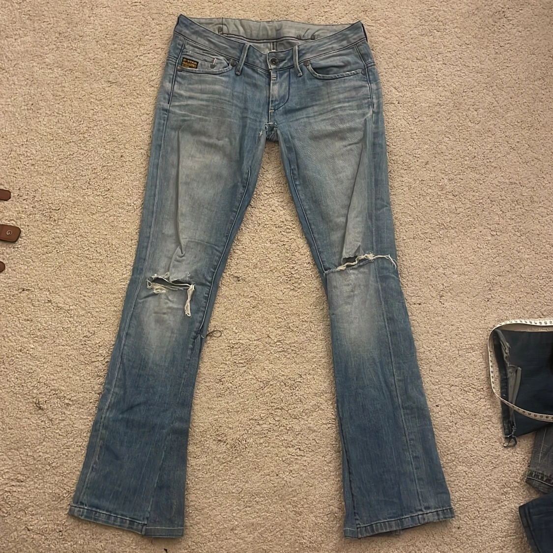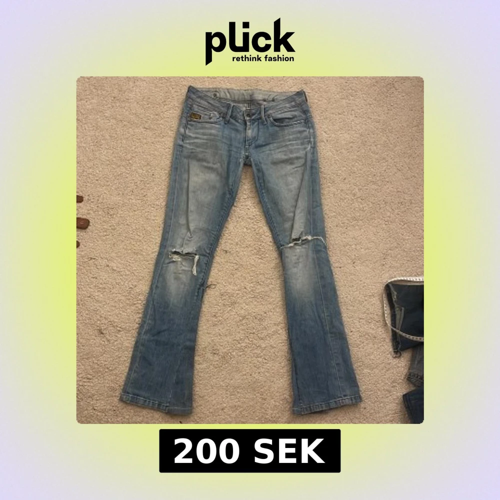 Säljer ett par ljusblå lågmidjade jeans från G-Star med bootcut passform. Midjemåttet är 39 och innerbenslängden 84💕 säljer pga de inte passar mig längre