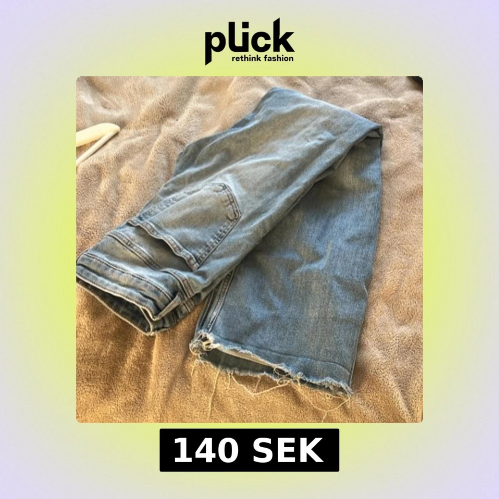Säljer ett par ljusblå jeans med fransig, rå kant nedtill för en cool och avslappnad vibe. Klassisk femficksmodell med raka ben och normal passform. Perfekt för dig som gillar en lite edgy stil.