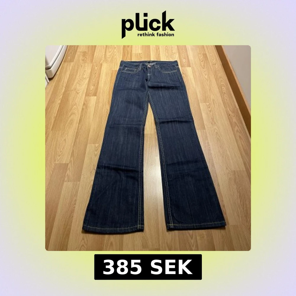 (17) Lågmidjade jeans i storlek 26 med riktigt snygg passform och ljusa sömmar. Midjemått rakt över: 37 cm, innerbenslängd: 85 cm 💗