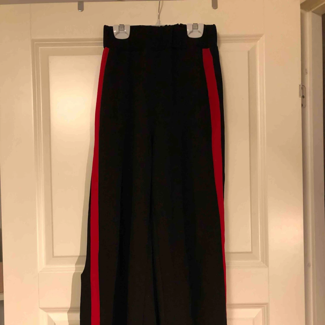 Balongbyxor med en röd söm på sidorna. Har även en slits vid byxbenets slut