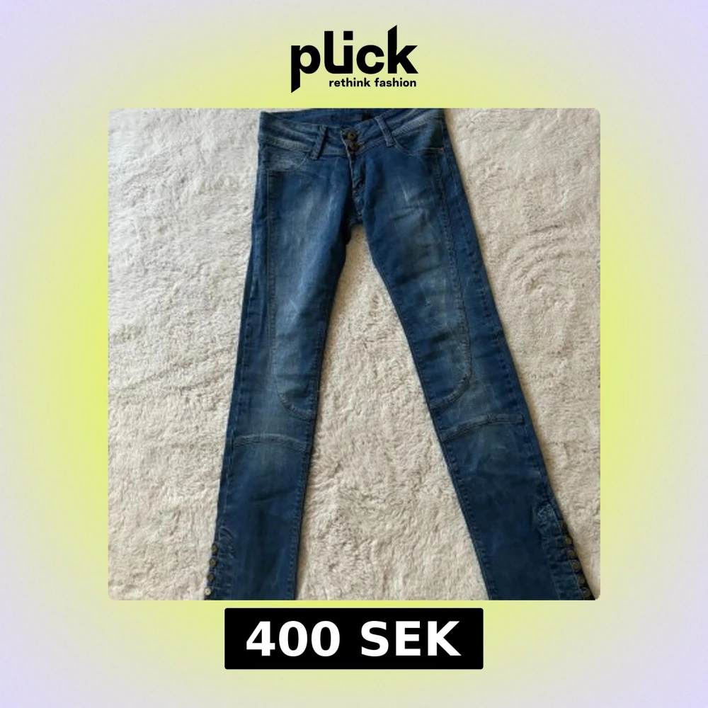 Säljer dessa lågmidjade straight/flare byxor med dekorativa knappar längst ner vid byxan. Passar xxs/xs midjemått är 36cm tvärsöver och innerbenslängd är 79cm