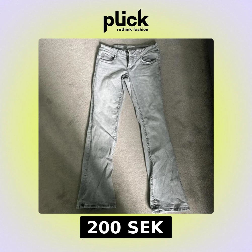 Säljer ett par grå jeans från Perfect Jeans i bootcut-modell. Byxorna har klassisk femficksdesign och normal passform. Perfekta för dig som gillar en tidlös look med lite utsvängda ben.