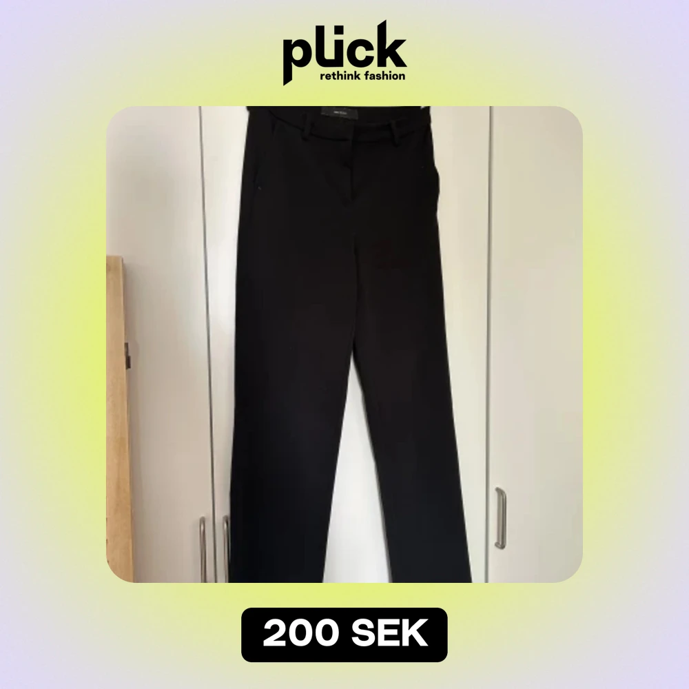 Säljer ett par stilrena svarta kostymbyxor. De är medelmidjade och har en klassisk straight passform. Perfekta för både kontoret och festligare tillfällen. Byxorna har hällor för bälte och en diskret dragkedja framtill.