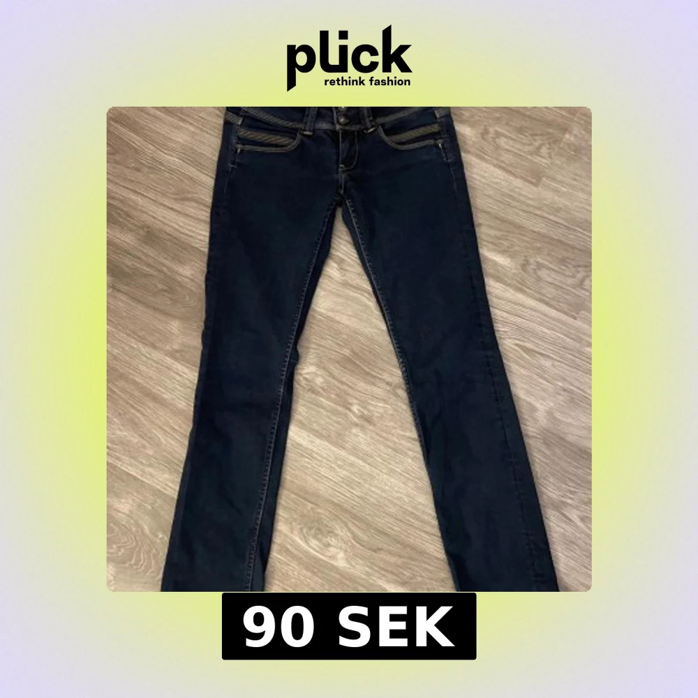 Snygga mörkblå jeans från Pepe med bootcut passform och klassiska kontrastsömmar. Jeansen har låg midja. köpta på sellpy!