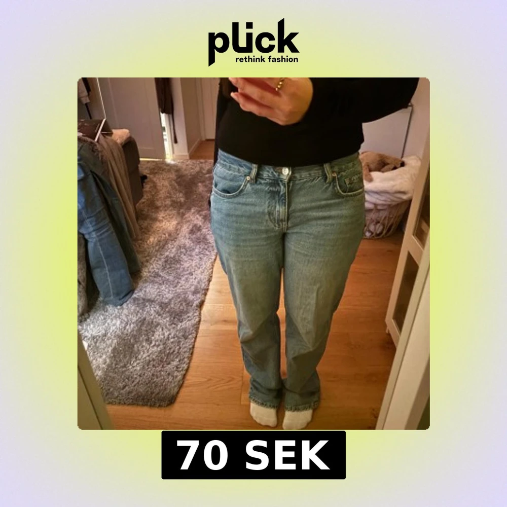Säljer ett par klassiska blå jeans från g perfect jeans i storlek 38. Modellen har rak passform med normal midja. Jeansen har fem fickor och är tillverkade i robust denim. Då jeansen är för långa för mig har jag gått på dem, därför dem hålen på baksidan av benen (se sista bilden).