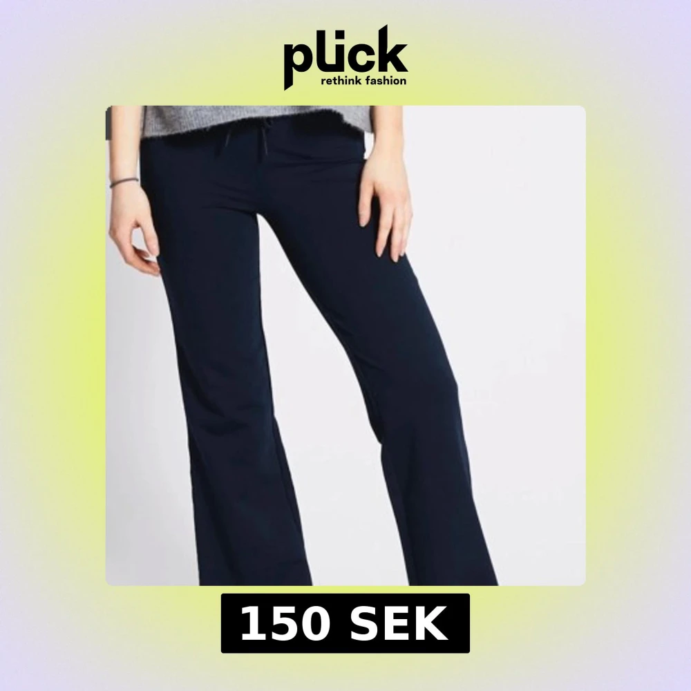 Snygga mörkblå mjukisbyxor med bootcut-snitt och dragsko i midjan. Byxorna har en avslappnad passform och är tillverkade i ett mjukt material som känns skönt mot huden. Perfekta för en chill och stilren look.