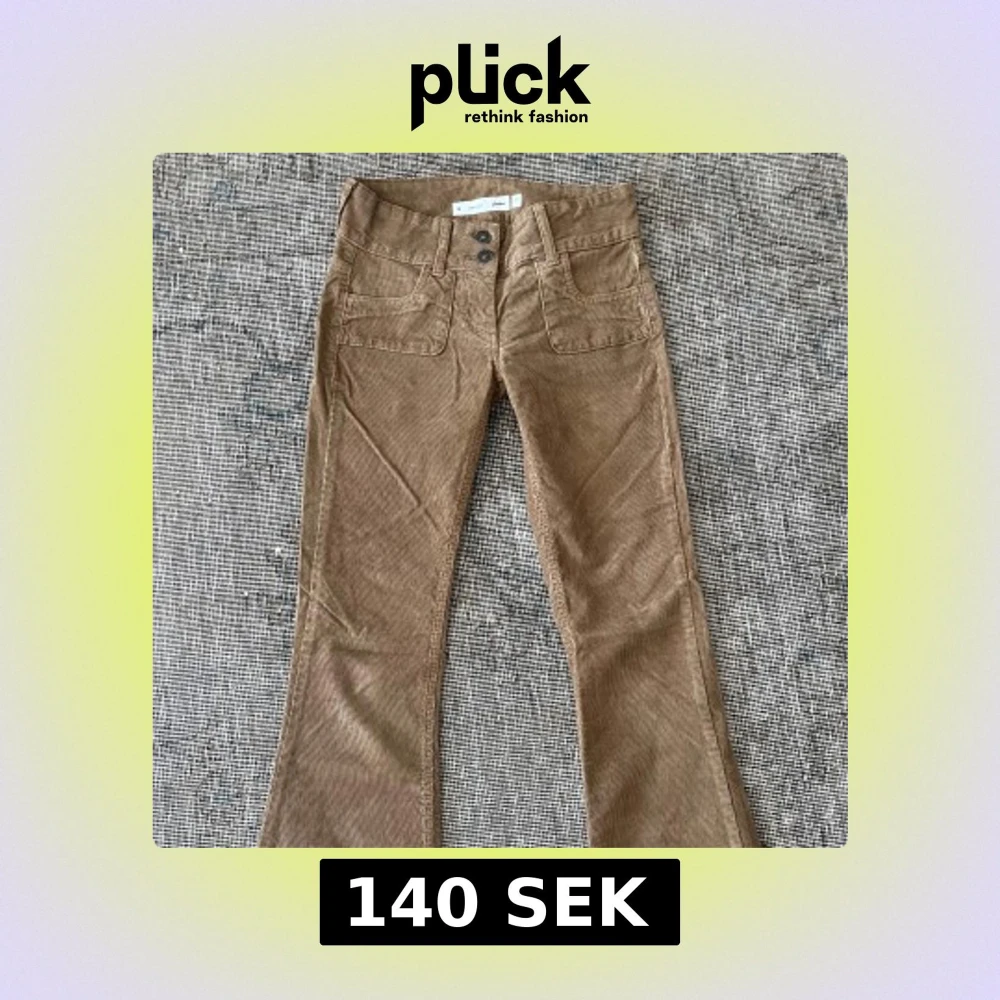 Snygga bruna manchesterbyxor från Subdued i bootcut-modell med låg midja. Byxorna har två framfickor, två bakfickor och dubbla knappar i midjan. Perfekt för dig som gillar retrovibbar och vill sticka ut med coola detaljer och skön passform.