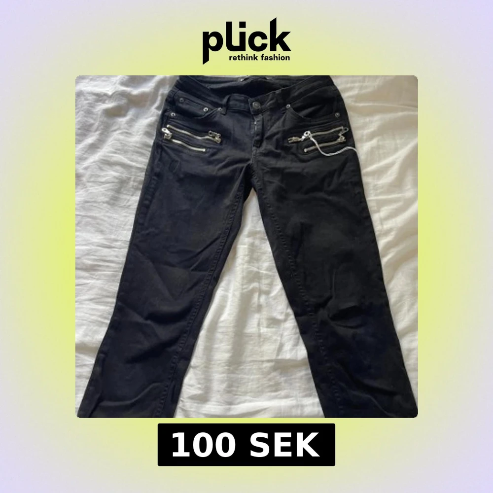 Svarta jeans från Denim Rebel med flera coola dragkedjor framtill som ger en edgy vibe. Byxorna är i stretchigt material med 98% bomull och 2% elastan. Klassisk femficksmodell och smal passform. Perfekta för dig som gillar detaljer och vill sticka ut.