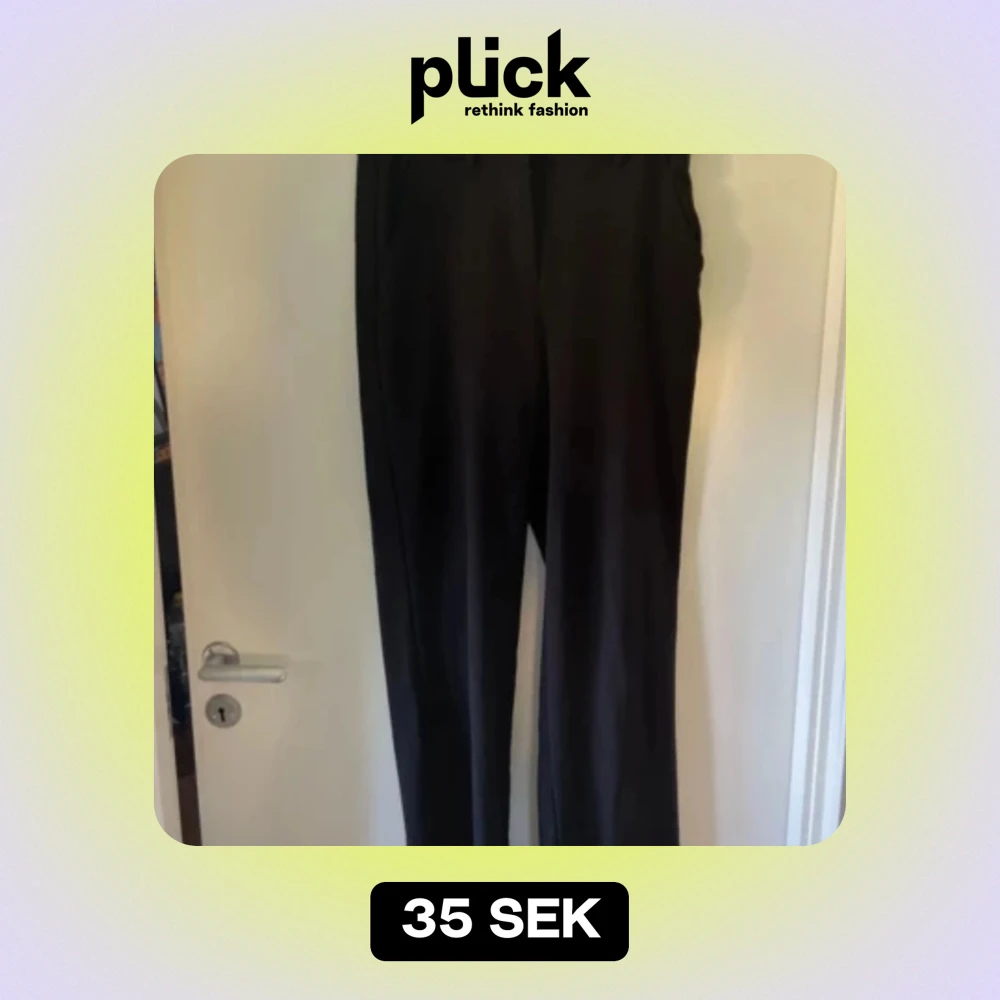 Svarta kostymbyxor med hög midja - Säljer ett par svarta kostymbyxor med hög midja och raka, vida ben. Funkar som både kostymbyxor och mjukisbyxor. Lite noppriga annars inga defekter😙