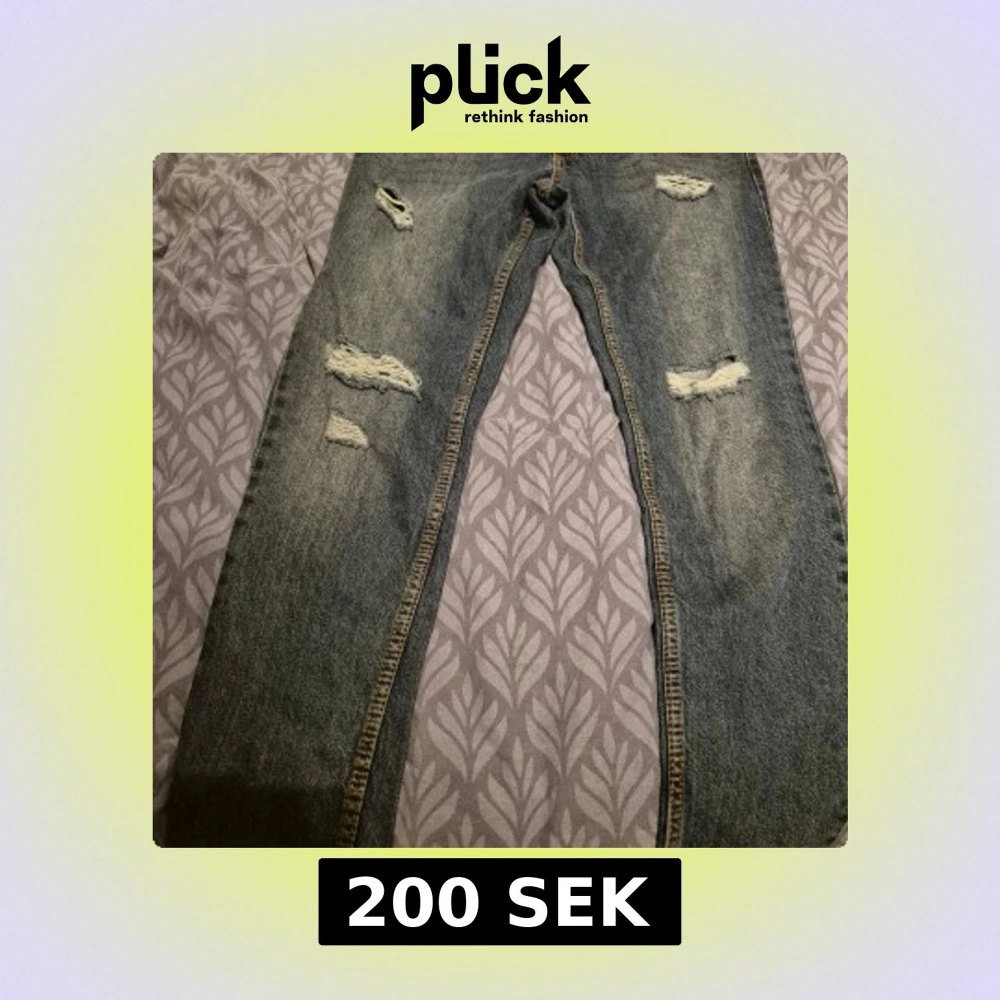 Säljer ett par blå boyfriend jeans med coola slitningar. De har en avslappnad passform och är perfekta för en casual look. Jeansen har klassisk femficksdesign och är tillverkade i ett slitstarkt denimtyg.