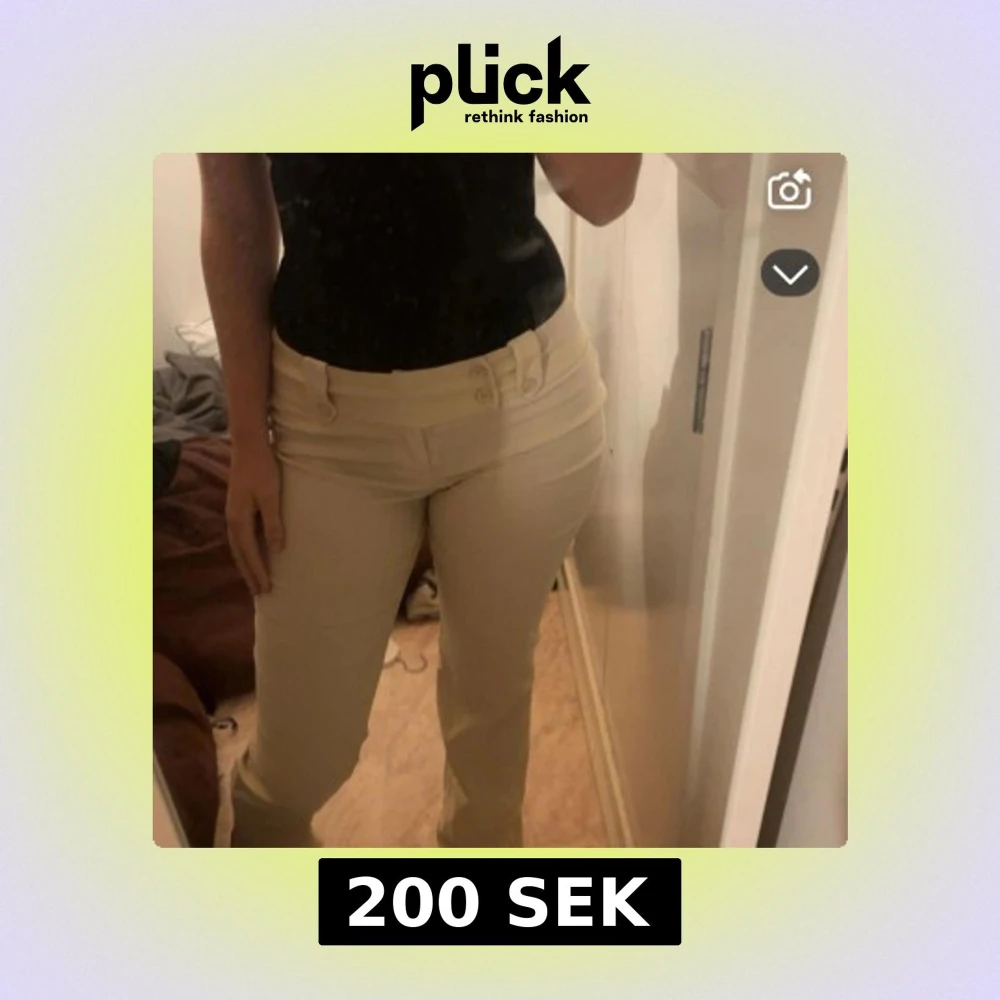 Snygga beiga byxor med hög midja och dekorativa knappar framtill. Byxorna har en rak passform och är perfekta för dig som gillar en stilren look. Materialet känns mjukt och bekvämt, och färgen är lätt att matcha med olika toppar.