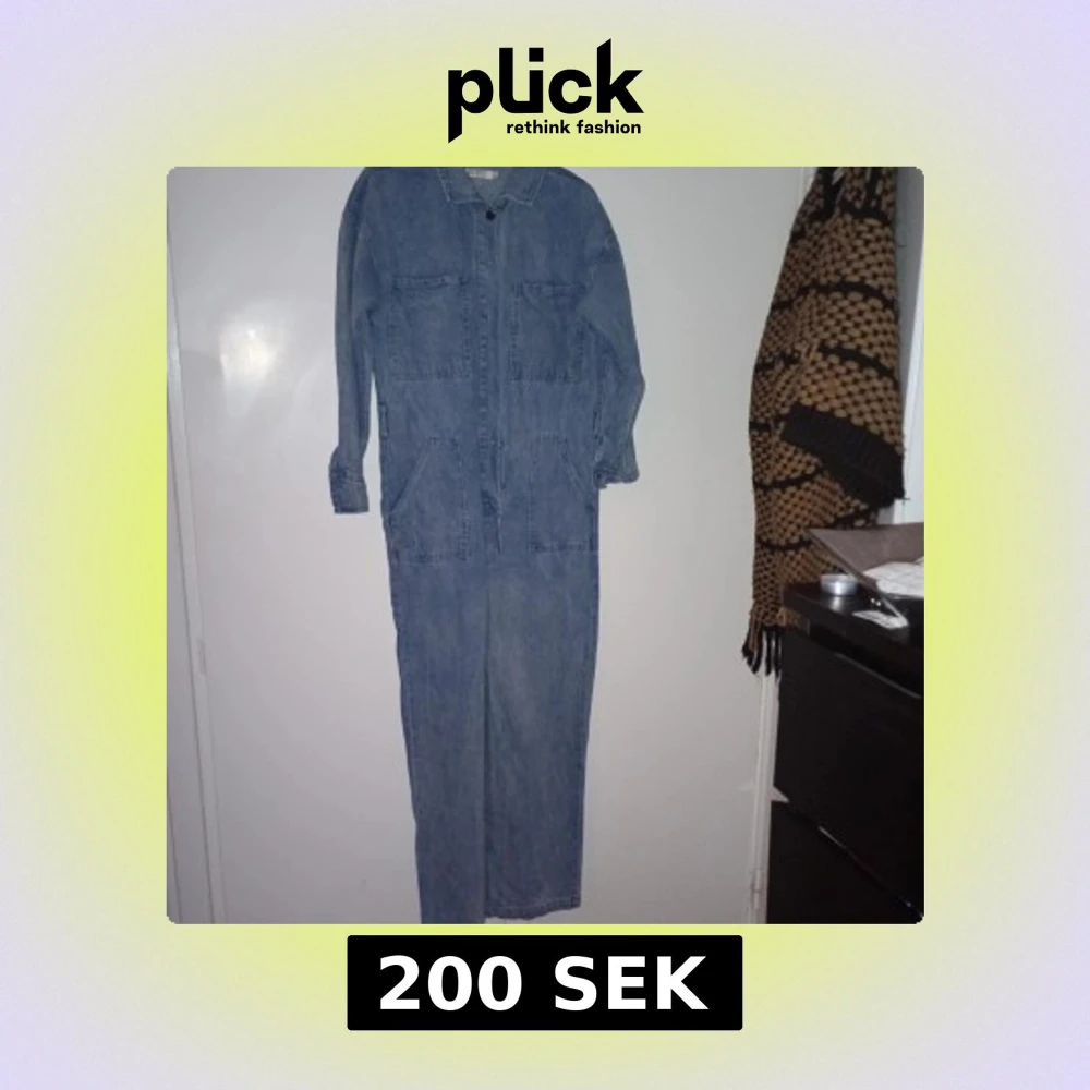 Säljer en blå jeans jumpsuit med långa ärmar och stora fickor både fram på bröstet och vid höfterna. Klassisk skjortkrage och stängning framtill. Perfekt för dig som gillar en avslappnad och cool stil.