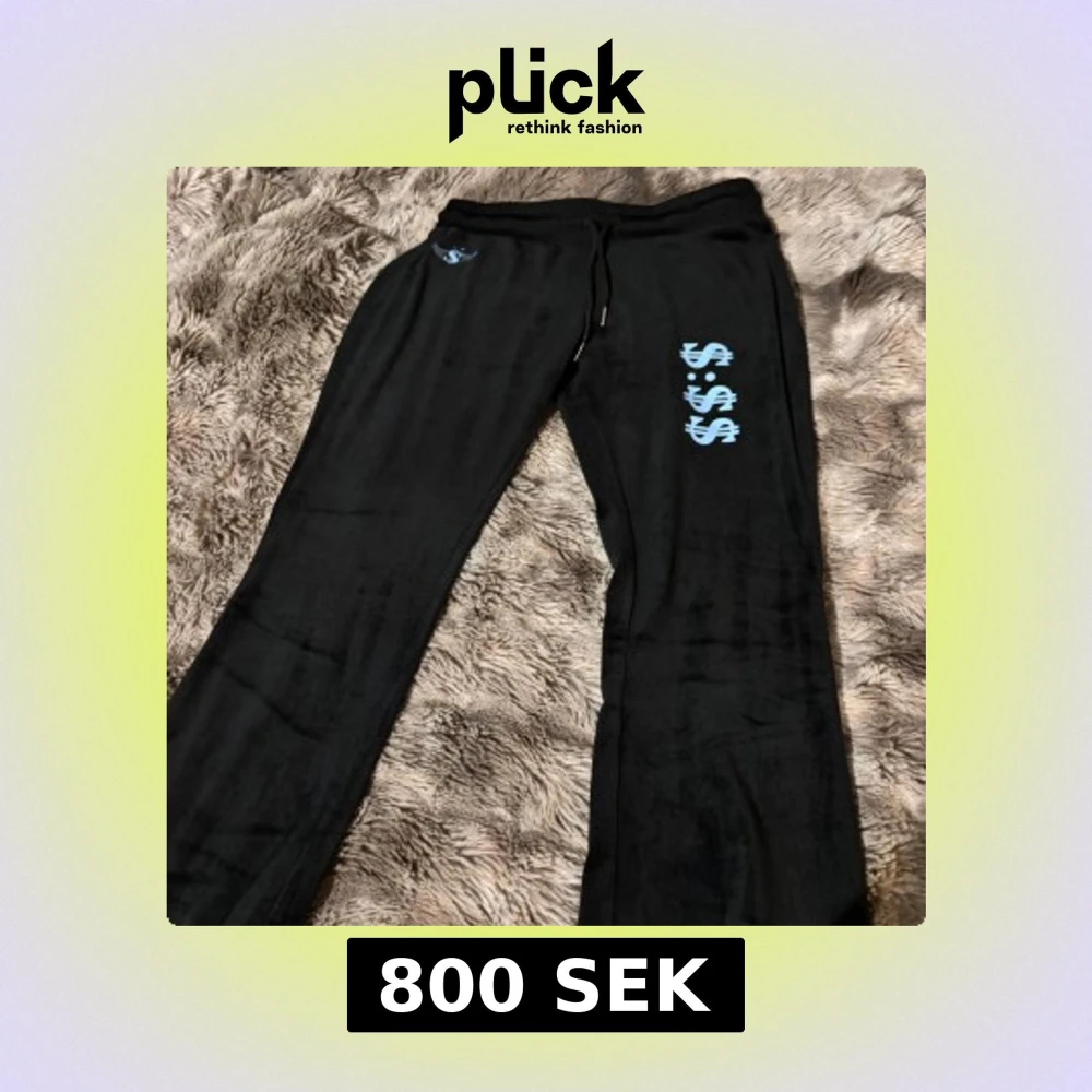 Y2K svart velour set med blå tryck, storlek M. Endast använd en gång.