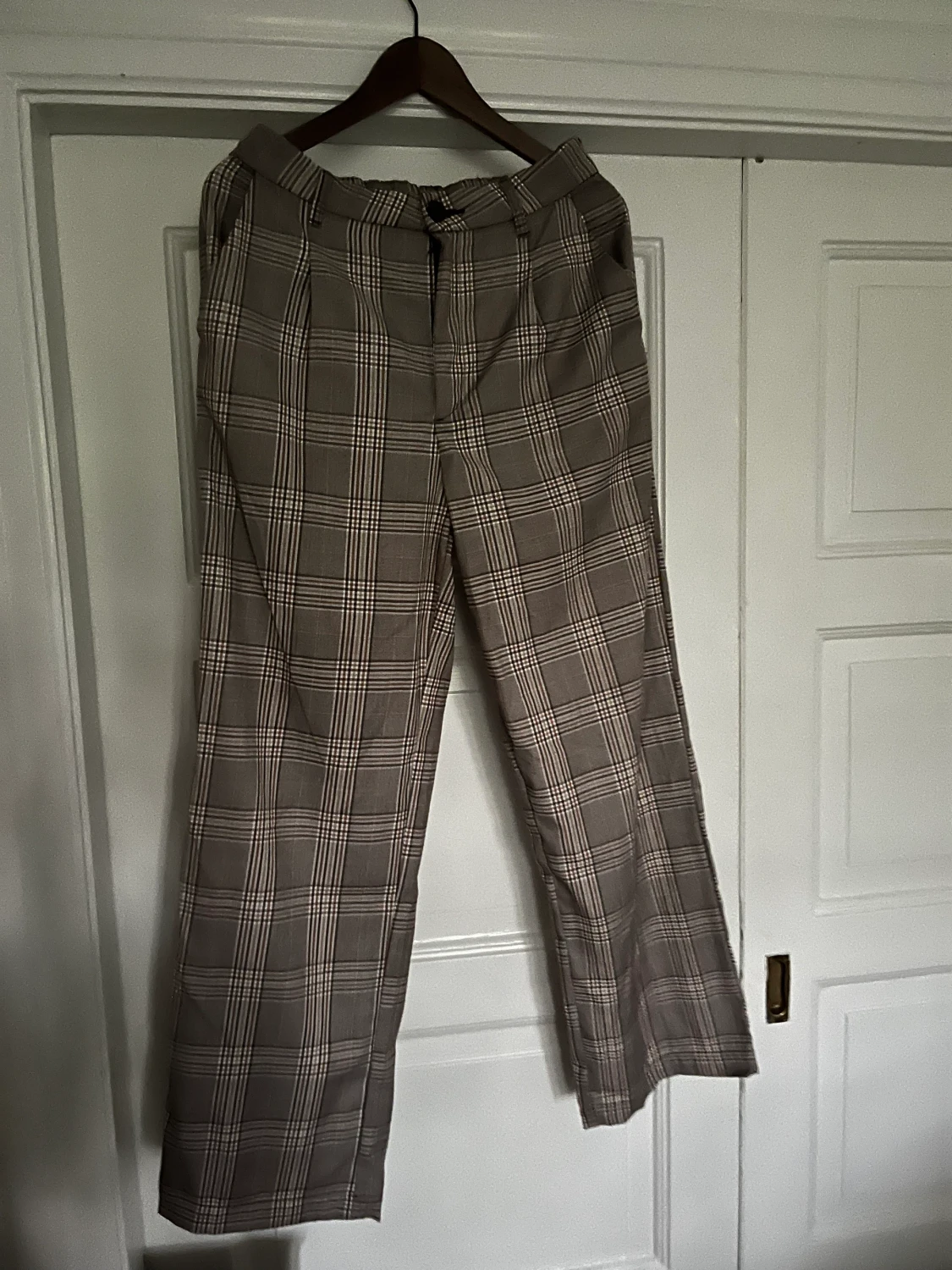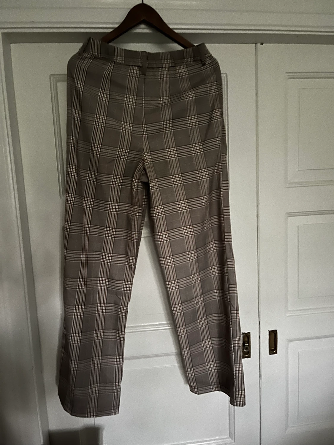 Fina, tartanrutiga byxor. Brun/beige/svart/vit.