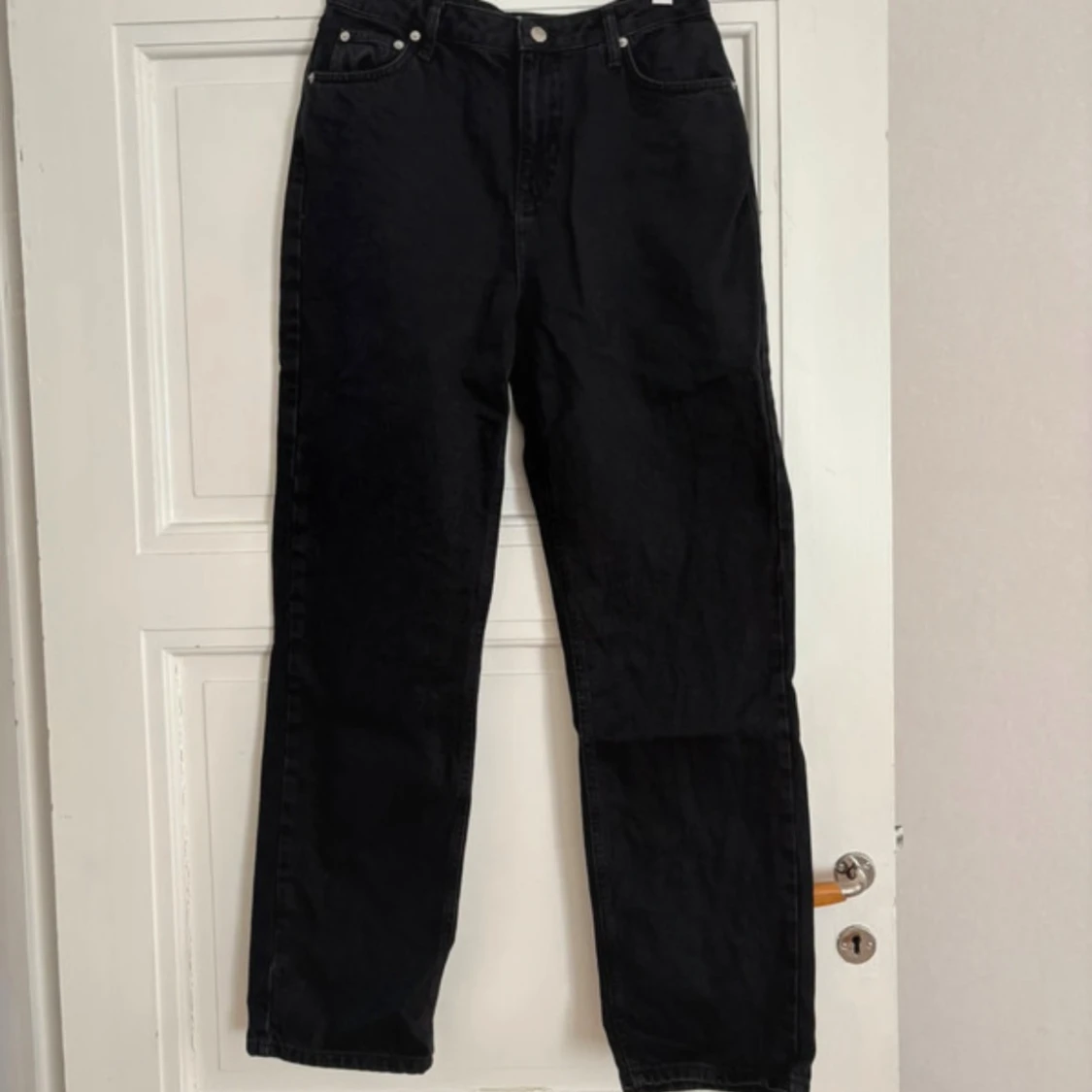 Svarta jeans från NA-KD x Josefine HJ i rak modell med normal passform. Klassisk femficksdesign, hög midja och dragkedja med knapp. Tillverkade i denim av bomull. Perfekta för en clean och stilren look.