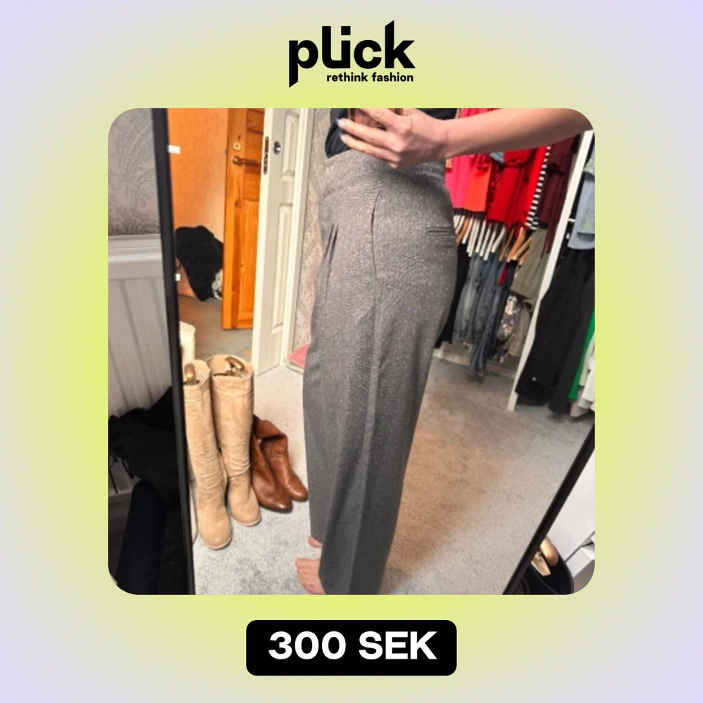 Grå vida kostymbyxor i storlek 38 som aldrig blivit använda.